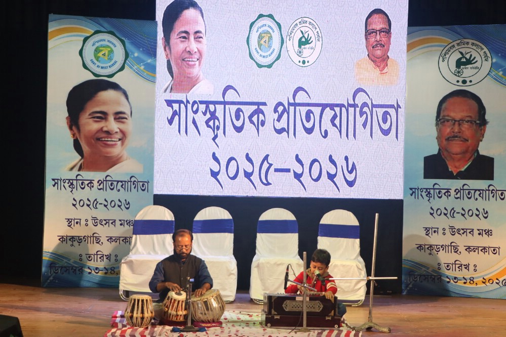 Glimpses of State Level Annual Cultural Competition for 2025-26 organised by West Bengal Labour Welfare Board on 13th and 14th Dec,2025 at Utsav Manch, Kankurgachi in presence of Shymal Datta, Hon'ble Welfare Commissioner, West Bengal and other dignitaries of Welfare Board. Preliminary rounds were earlier held at zone wise welfare centres throughout the state and champions of those rounds participated in this state level final round. Recitation and singing competitions held on 13th December and dance competitions in both individual and group dance categories on 14th December. Champions of different age groups were awarded trophies,certificates and other attractive gifts. Madhabi Mukholpadhayay and Arjun Chakroborty, two legendary personalities of the Bengali film industry were present in this year's programme as two special guests. With wider participation and spectacular performance of the incumbents, this auspicious programme was a grand success.