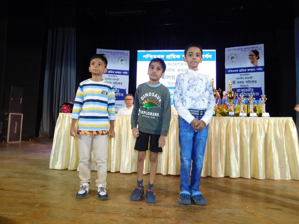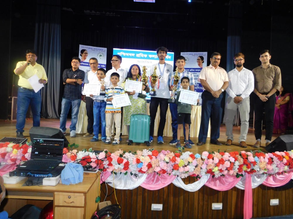 Dependu Barua, Grand Master was the chief guest of the inauguration programme of the Competition.Sumita Mukherjee, Hon'ble Welfare Commissioner & Special Labour Commissioner, West Bengal and others officials of the Welfare Board were present at the time of inauguration.After the inauguration ceremony, Chief Guest Dipendu Barua delivered a Valuable speech for all the contestants, Officials and audience. A Special documentary video regarding the history of chess in Bengal was telecasted and the initiative is appreciated very much. Total 110 players participated in this brain game and matches were played in seven round rapid format under the guidance and supervision of Debasish Barua, FIDE recognised Arbiter and his team. After a tough competition consisting of many ups and downs , the astonishing performances of many contestants, Anisha Biswas from Bongaon finally emerged as the State Champion by winning all the seven games. This competition has also set an example by dismantling the conventional barriers of age and sex and making it an open tournament for all. All the Contestants were given participation certificates and the champion and other two runners up have been honoured with certificates and other gifts including trophies. Apart from this, three more junior players were awarded with special gifts and trophies for their exceptionally good performance as child prodigy. Conducting such type of standard chess tournament was a maiden experience for the Board but with smart planning and proper coordination, finally this tournament was a grand success.