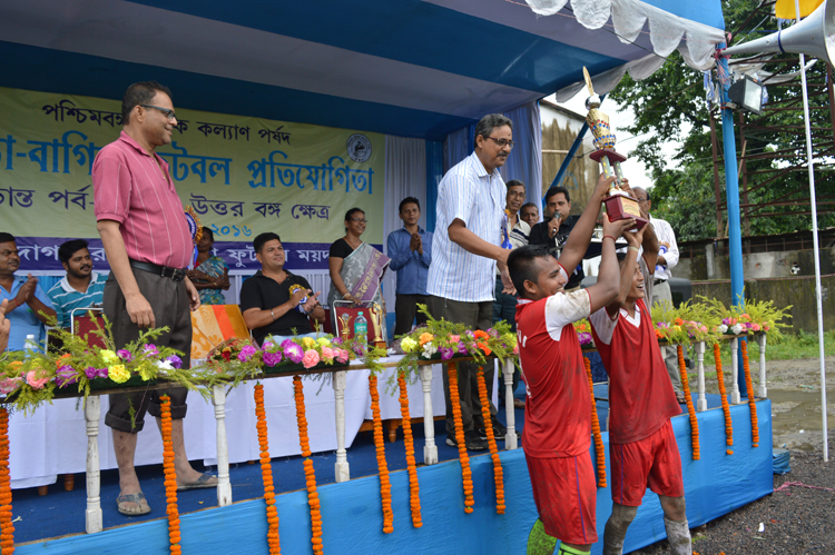 Football Tournament of the North Bengal Region has been organised through the different Labour Welfare Centres of North Bengal. 80 Tea-Gardens took part in the tournament. The semi-final and final games were played on 23/07/2016 at the ground of Dagapur Tea-Garden. Janab Zakir Hossain, Hon'ble Minister –of- State, Labour Department, Government of West Bengal & Vice-Chairman of the Board grace the occasion as Chief Guest. Welfare Commissioner was also present in the programme and distributed the trophies to the winners and runners team.