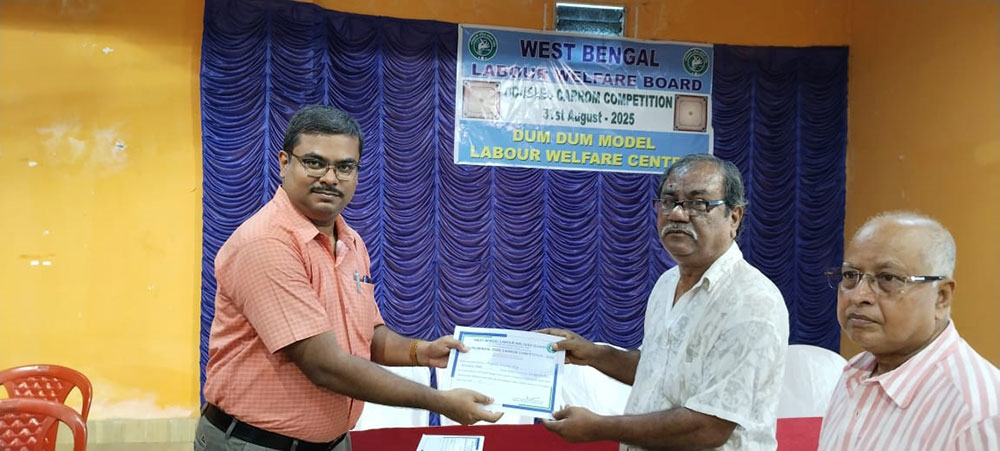 Glimpses of State Level Carrom Competition 2025 organised by West Bengal Labour Welfare board through out the Model centers from 18-08-2025 to 10-09-2025. near about 500 participants contested in various centers.All the contestants were given participation certificate and centre wise champion and 2 runners up were awarded with certificate of honour along with attractive gift.