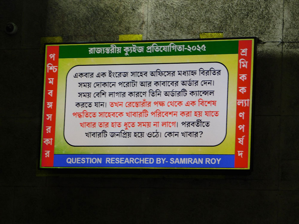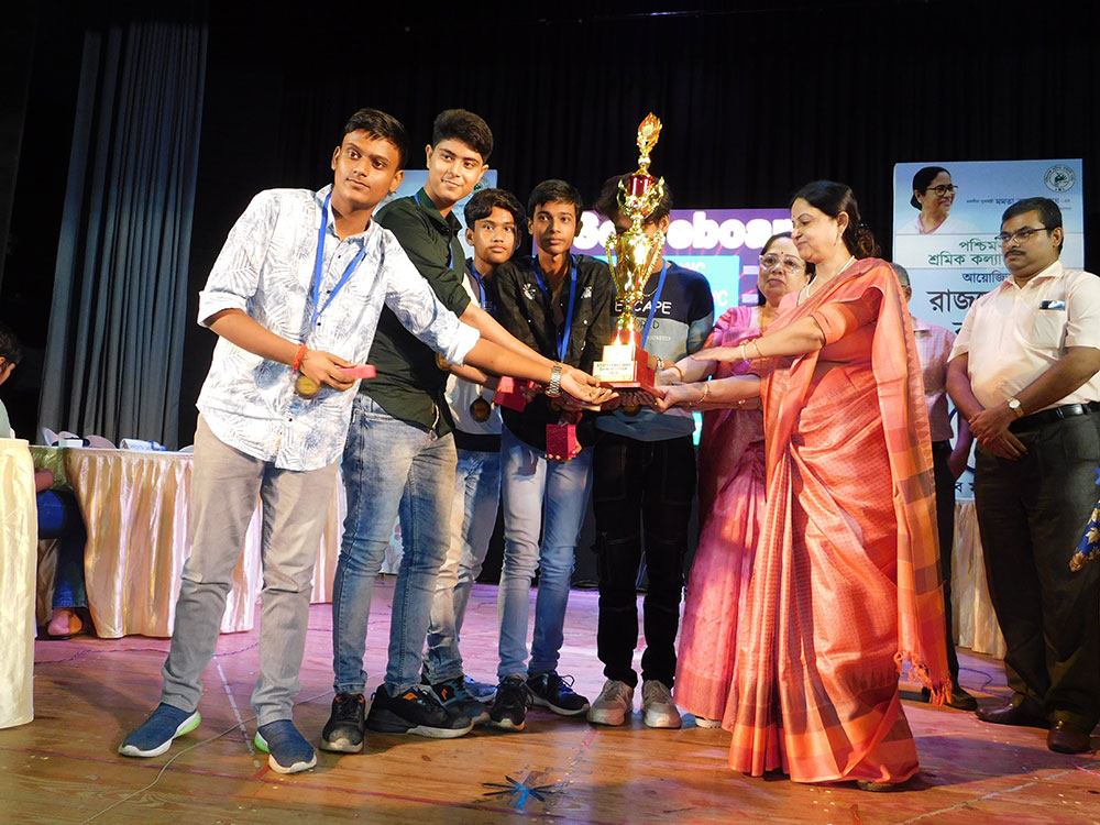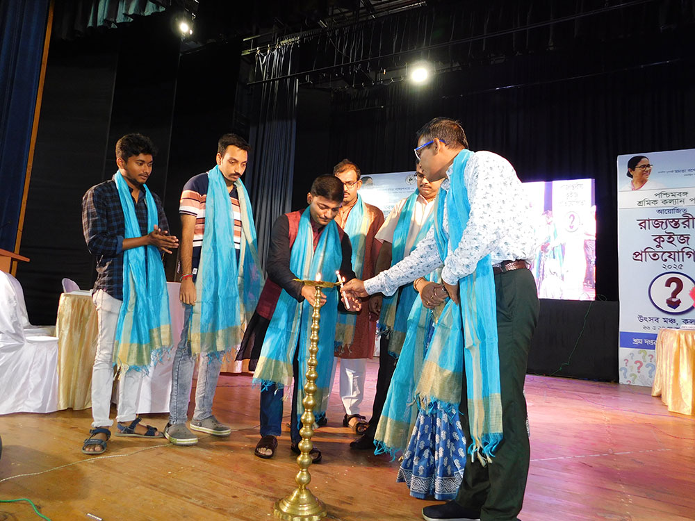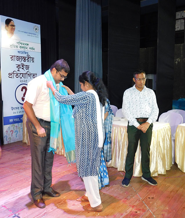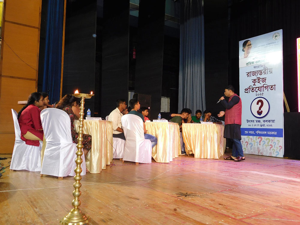 Glimpses of State level Quiz Competition 2025 organised by West Bengal Labour Welfare Board, Govt of WB held on 26th & 27th july 2025 at Utsav Mancha, Kolkata in Collaboration With the quiz team "Gyananeweshan". Teams from different parts of West Bengal turned up for the battle of brain. over 150 ignited minds participated in the competition. 5 teams form Bongoan, Danesh Sk. Lane, Belghoria, Jamuria and jhalda qualified for the grand final. After a tough neck to neck fight till the last question, Boangoan became champion with 155 points defeating Danesh Sk. Lane by a narrow margin of 10 points. Sumita Mukherjee, Hon'ble Welfare Commissioner, West Bengal and Special Labour Commissioner gave the Trophys and other testimonials to the teams contested in the final round of the competition. Debu kar, Deputy Welfare Commissioner, West Bengal and others officials of the Welfare Board gave their august presence in the prize distribution ceremony of the competition. Total 25 teams participated in this State Level Competition. With spontaneous and enthusiastic response from both the participants and the general viewers, the programme was a spectacular success.